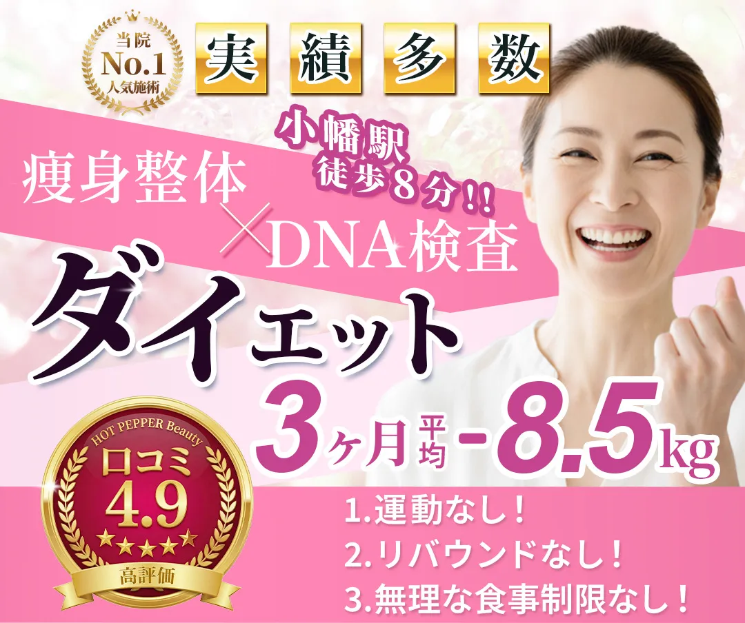初回のカウンセリングなどを踏まえダイエット計画をお話させていただき、ご納得いただいてからダイエットコースの施術を行なっていきます!当院の人生最後のダイエットコースを「ぜひやってみたい!」思っていただいた方のみのご案内となりますので、お気軽にお越しください。
